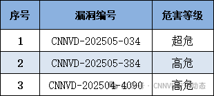 根据国家信息安全漏洞库(CNNVD)统计,本周(2025年4月28日至2025年5月4日)安全漏洞情况如下: