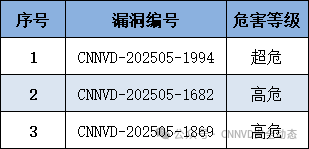 根据国家信息安全漏洞库(CNNVD)统计,本周(2025年5月12日至2025年5月18日)安全漏洞情况如下: