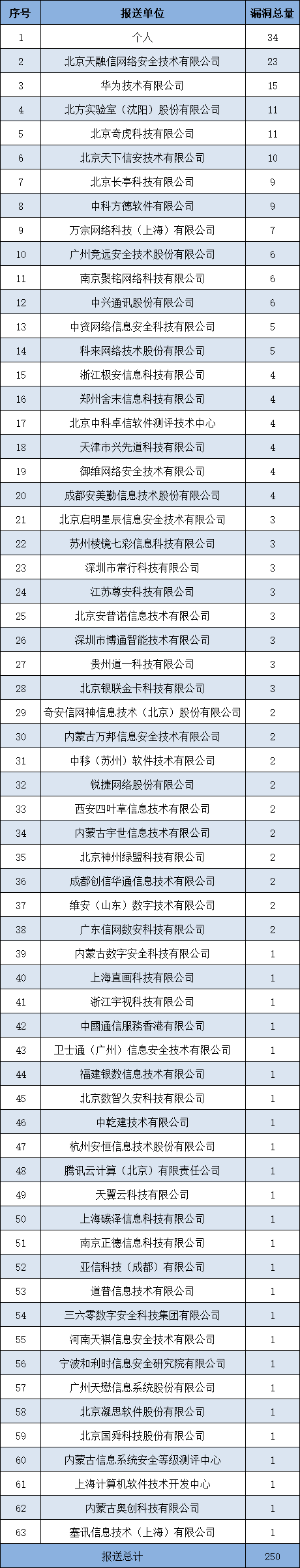 本周CNNVD接报漏洞250个,其中信息技术产品漏洞(通用型漏洞)232个,网络信息系统漏洞(事件型漏洞)18个。