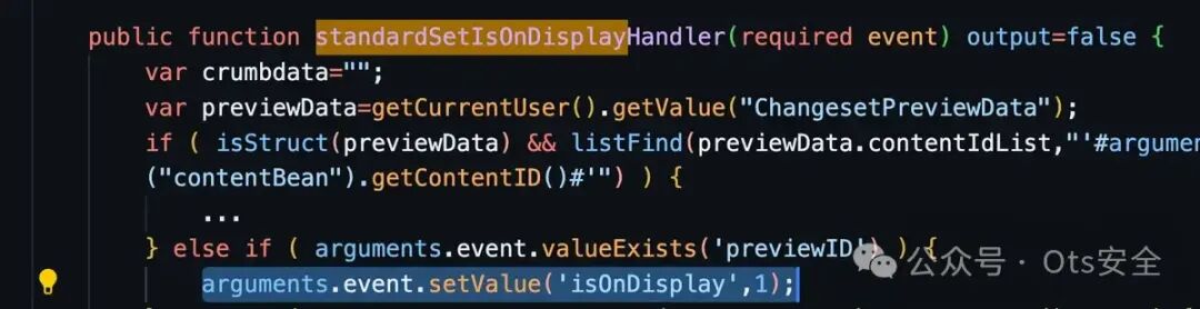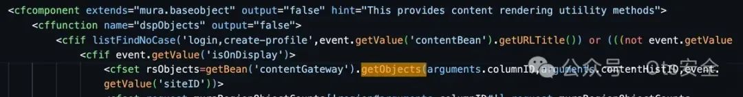然而,事实并非如此。重新审视源代码后,我们发现 dspObjects 函数中有一个关键条件。在调用 getObjects 之前,必须满足一个 if 条件:在 Mura servlet 事件处理程序中,必须将 isOnDisplay 属性设置为 true。最初,我们假设事件处理程序上的任何属性都可以通过简单地将属性名称及其值作为参数传递来设置。这一假设基于我们在代码库中的调试会话。