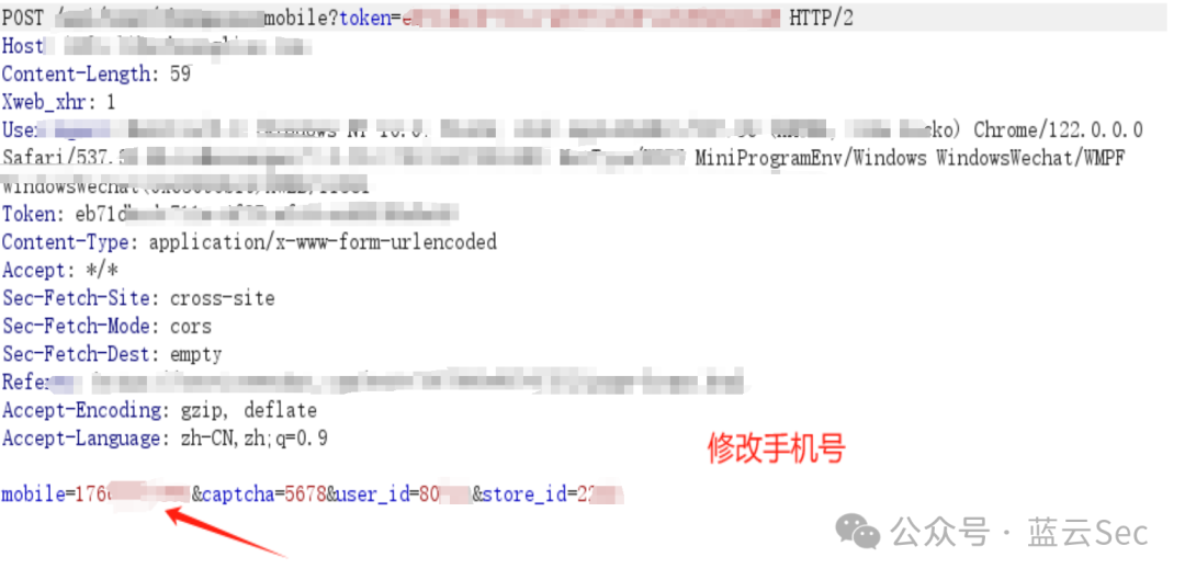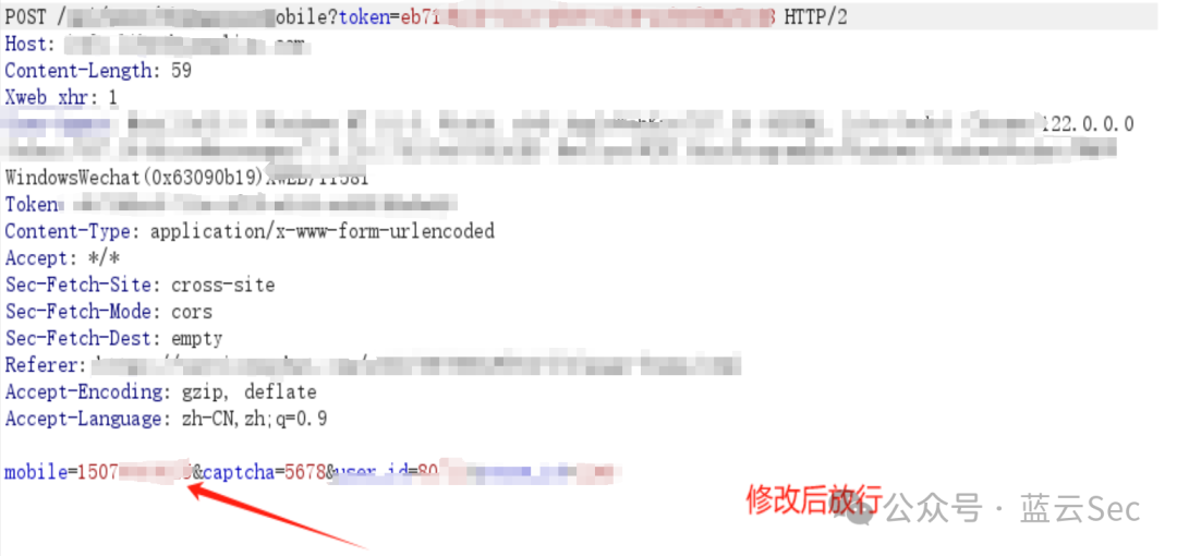 burp获取请求包,修改mobile字段为其它手机号,放行即可任意用户登录成功。