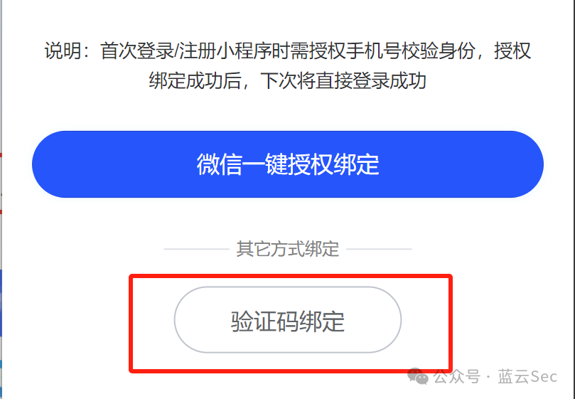 点进去可以看到有两种登录方式,其中可以进行验证码绑定登录,通过验证码绑定,其实就是手机号验证码的方式进行注册登录。