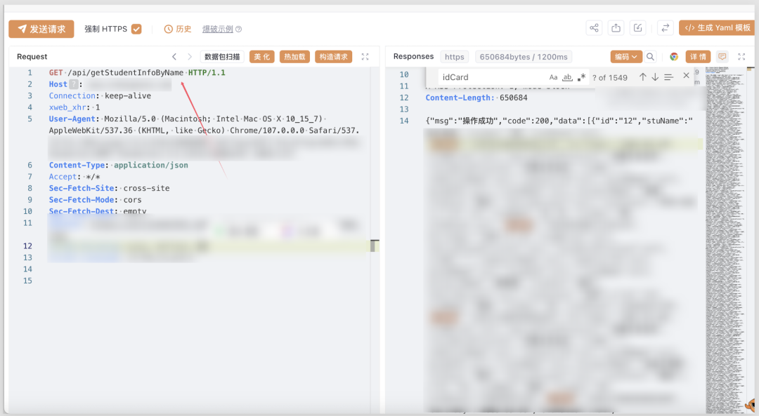 该接口可以获取学生信息,但是需要传入参数,因为我们并不知道这些参数具体数值,所以选择无参数访问