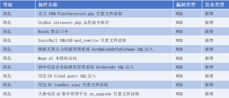 2025年04月29日至2025年05月14日累计更新漏洞插件107个,其中重点插件10个