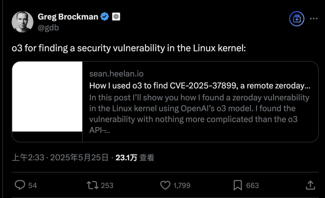 历史首次!o3找到Linux内核零日漏洞,12000行代码看100遍揪出,无需调用任何工具