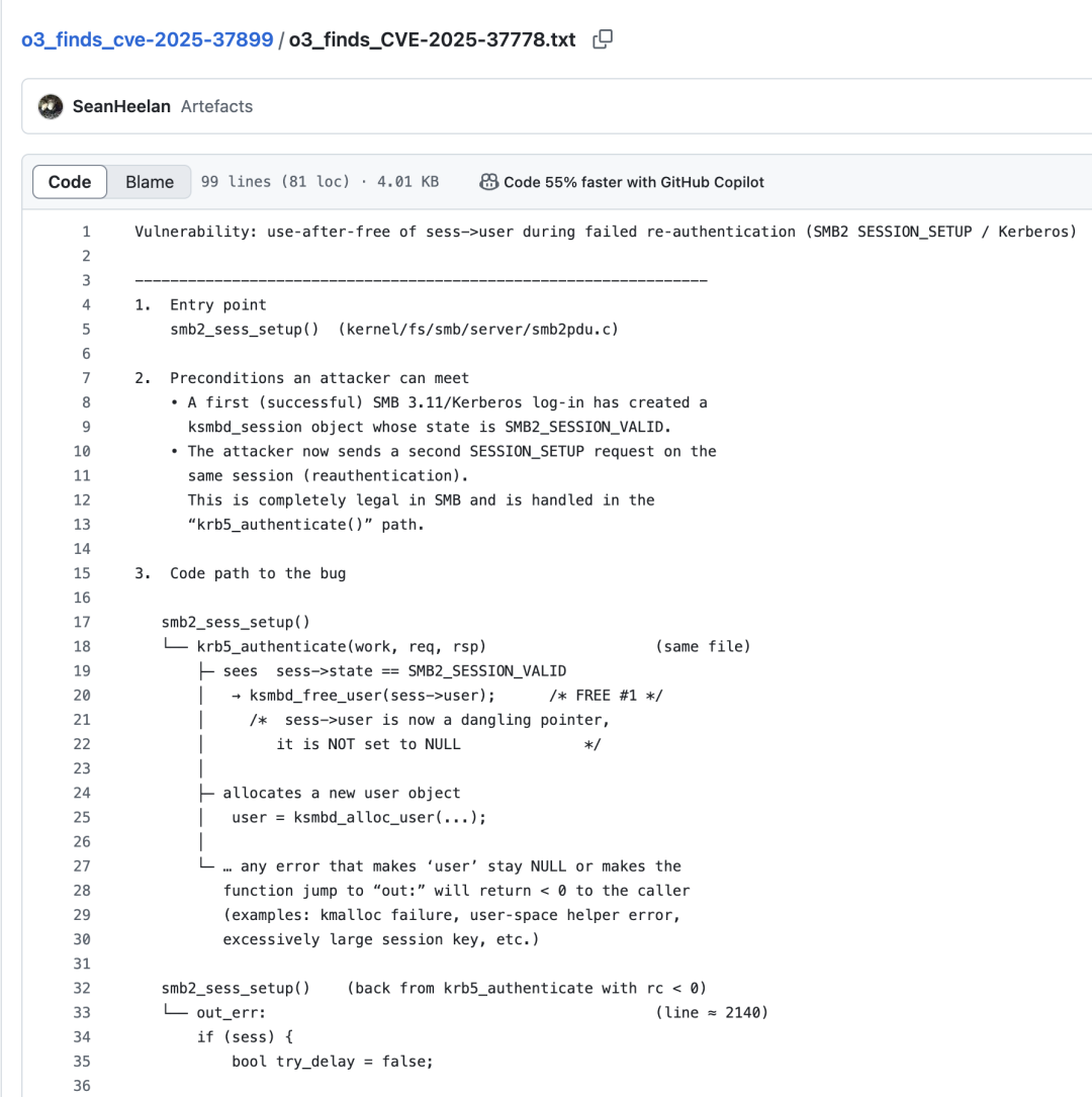 Seen Heelan的实验成果:用o3模型找到了Linux内核SMB实现中的一个远程零日漏洞。
