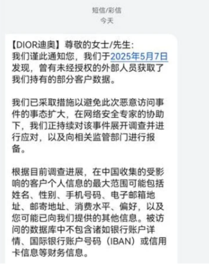 事件最早于5月7日被发现,目前已确认波及韩国和中国市场。Dior表示已采取应急措施,并聘请网络安全专家协助调查。公司正按照相关法规通知监管机构和受影响客户。