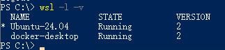 查看WSL状态,竟然有两台虚拟机在运行,分别是Ubuntu-24.04和docker-desktop。