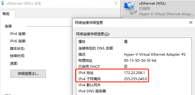 ),IP地址为172.20.208.1/20,Docker容器应该是跑在这张网卡上的。
