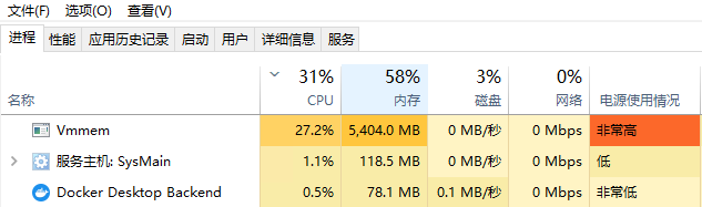 当然,在Windows系统中运行Docker的资源利用率也是真低,毕竟臃肿的Windows系统,加上Hyper-V嵌套虚拟化,轻轻松松吃掉5 GB运行内存稀松平常;相比于直接使用Linux系统而言,好几个GB的内存就这么白白浪费了,而且镜像读写都满。没办法,毕竟人力效率跟资源效率不能兼顾。