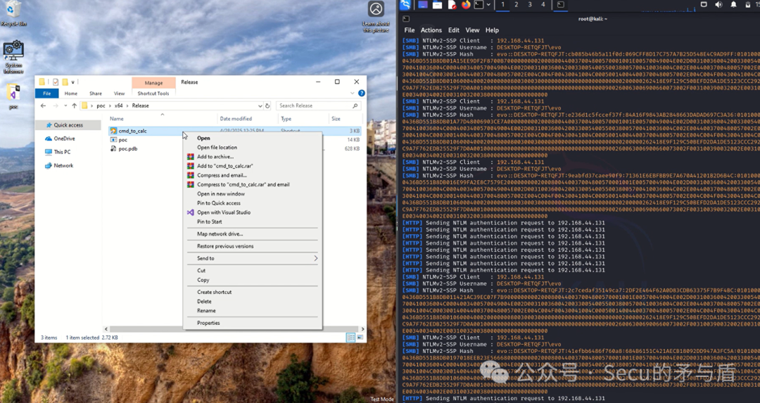 :当用户浏览快捷方式所在目录或右键文件时,Explorer 会提前解析该数据块并尝试访问上述 UNC 路径,自动发起 NTLM 身份验证。