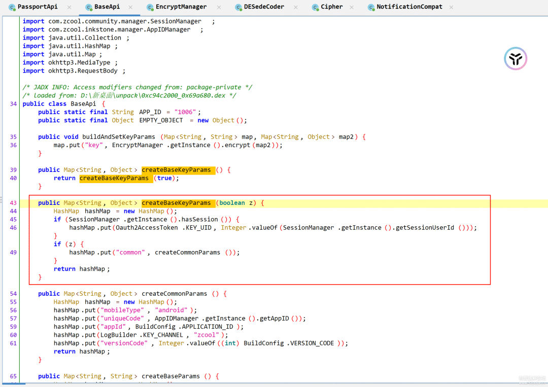 // createBaseParams 是加密后的参数,createBaseHeaders()函数用于构造请求头