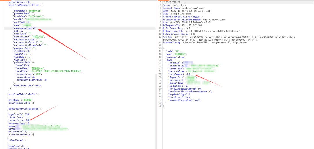 这个时候我想再提高一下危害, 既然订单的价格是由用户类型所关联的价格决定了,我是否可以自主的再次修改增值的业务参数呢?享受到最高的优惠, 船票分为上等中等, 利用普通订单价格享受高等舱位服务,通过对比普通舱订单和头等舱位订单定位到seatId