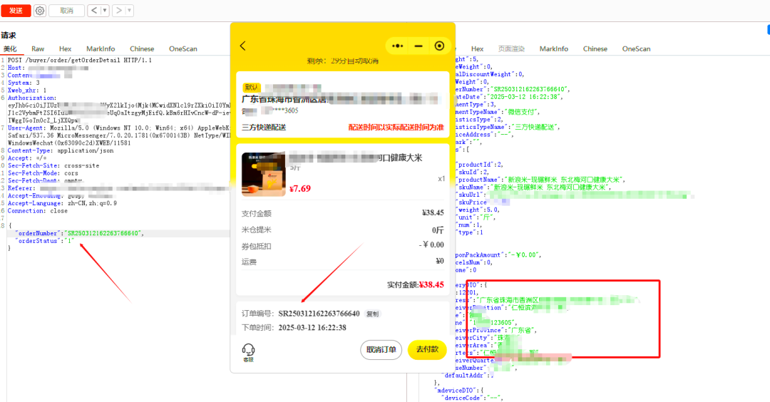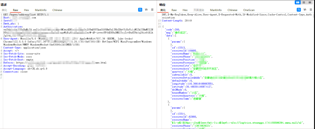 通过这两个创建订单接口和查询订单接口拿下全站收货地址包括二要素信息