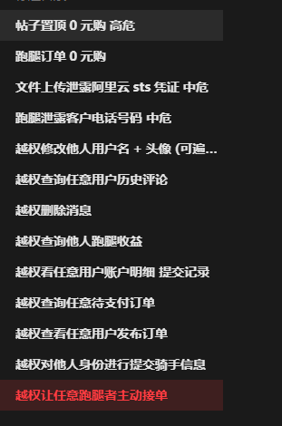 操作这个接口,替换订单号为任意的,跑腿者身份为别人的,可以任意指定谁去接谁的单,经过测试替换别人身份是可行的,订单号以及跑腿者的身份利用其他功能点的输出就可以得到