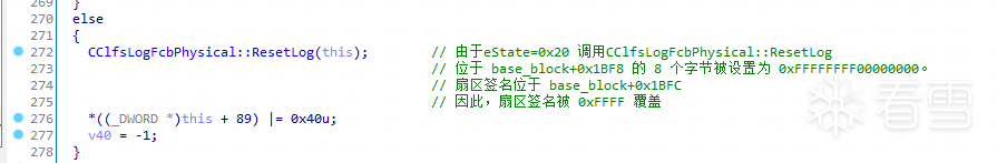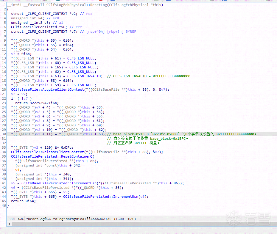 4.调用CClfsLogFcbPhysical::ResetLog函数。