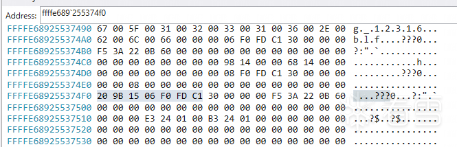 最初在 MyLog.blf 文件中设置为 0x00000050 的 SignaturesOffset 字段在内存中已设置为 0xFFFF0050。