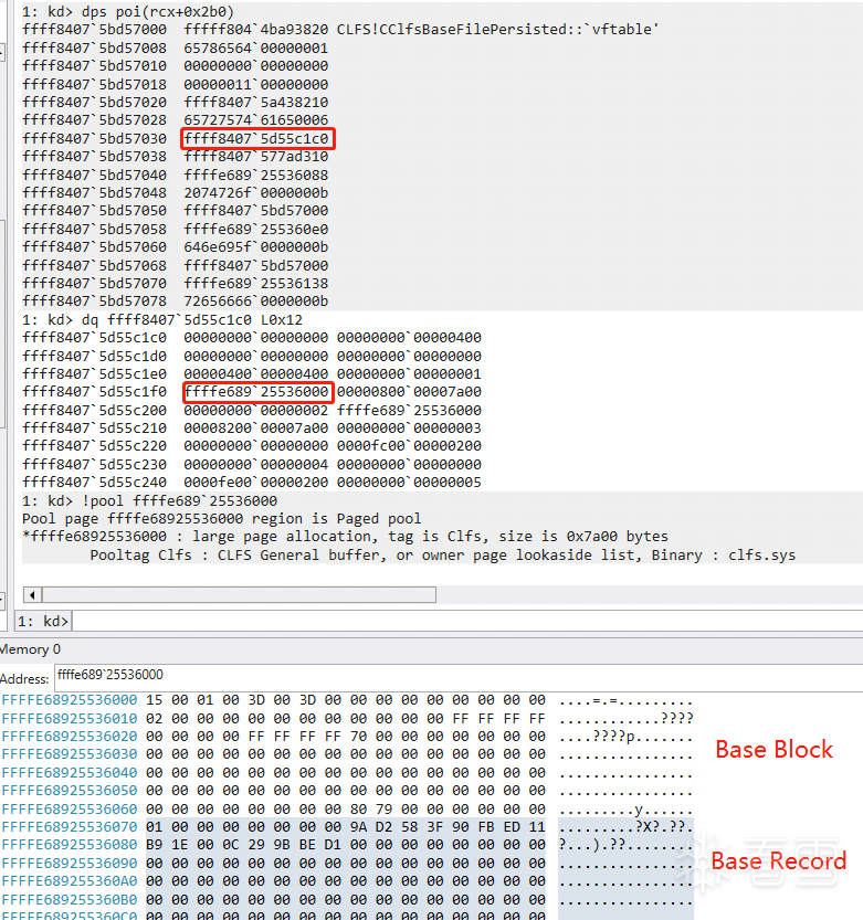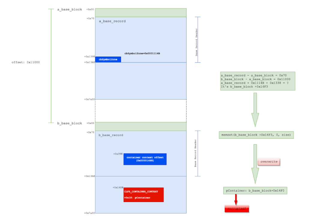 从CLFS_CONTAINER_CONTEXT中的CClfsContainer将损坏的指针复制到Base Record中CClfsBaseFilePersisted+0x1c0处。