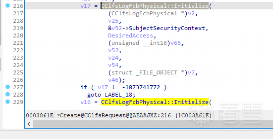 当用户空间调用CreateLogFile函数时,CLFS!CClfsRequest::Create负责处理这个请求。当 CreateLogFile函数用于打开现有的基本日志文件时,会调用CClfsLogFcbPhysical::Initialize。