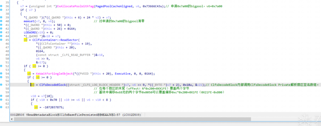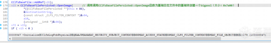 1.调用CClfsBaseFilePersisted::OpenImage函数为基础日志文件中的基础块创建一个bigpool(大小:0x7a00)。