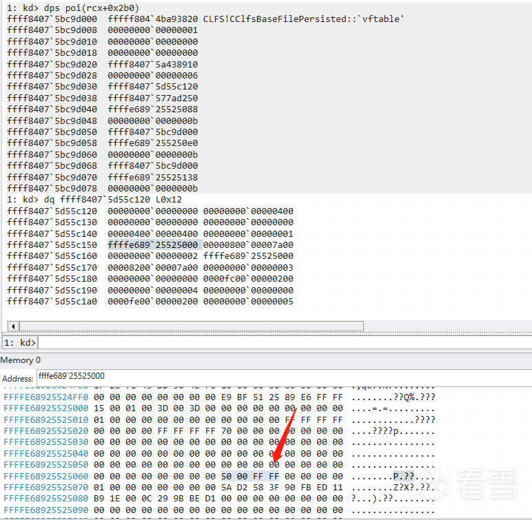 在内存中 一个CLFS基本日志文件可以由CClfsBaseFile类表示,可由CClfsBaseFilePersisted 类拓展,CClfsBaseFilePersisted的指针+0x30处储存了一个指向0x90字节大小的堆的指针。
