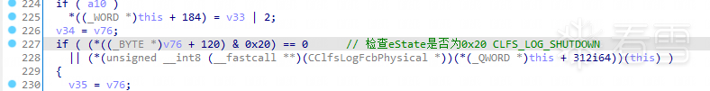 3.检查eState字段是否为CLFS_LOG_SHUTDOWN。