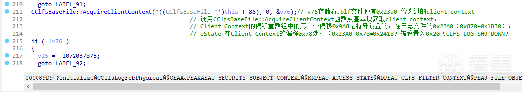 2.调用CClfsBaseFile::AcquireClientContext函数从基块获取客户端上下文。