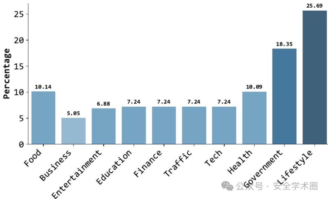 由下图可知:在所有受 MiniCPRF 影响的小程序类别中,生活方式类占比最高(25.7%),政务类(18.4%)和金融类(7.2%)的比例也相对较高。