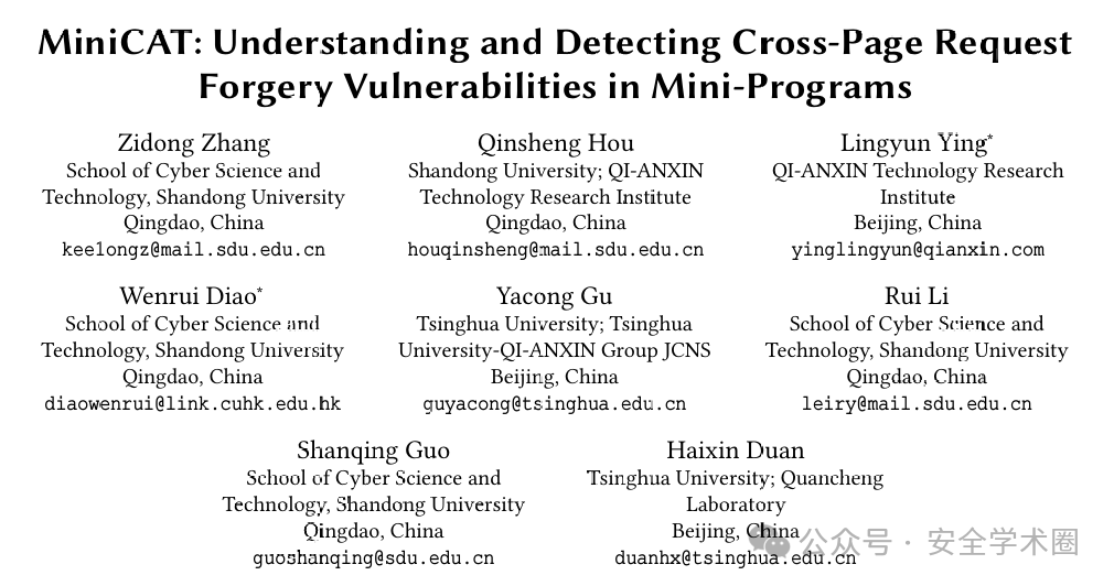 原文标题:MiniCAT: Understanding and Detecting Cross-Page Request Forgery Vulnerabilities in Mini-Programs