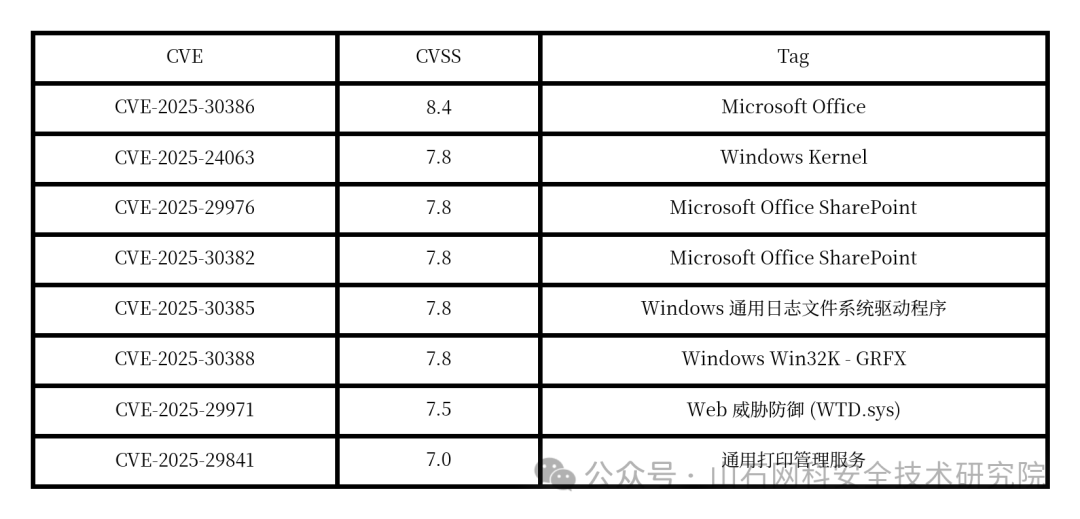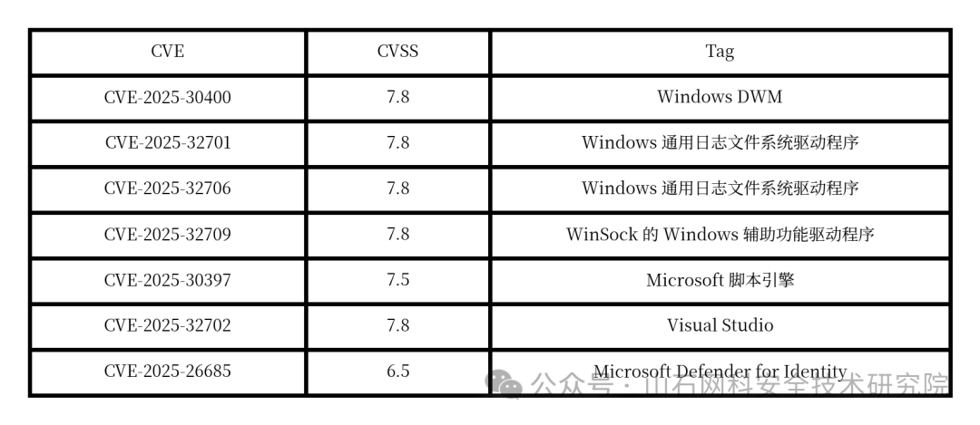 CVE-2025-32702、CVE-2025-26685被公开披露,有8个更有可能被利用的漏洞。