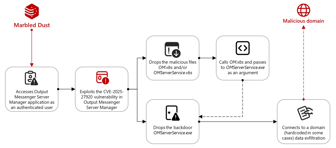 据微软威胁情报显示,这些名为 Marbled Dust 的黑客自 2024 年 4 月以来一直在入侵 Output Messenger(一款常用于工作场所和组织聊天的应用程序)的账户。