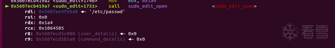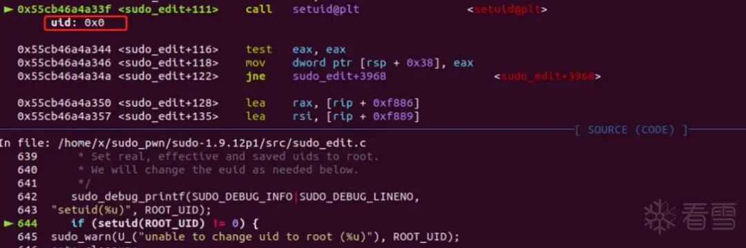 sudoedit首先设置了ROOT权限和临时可写目录,由于此时已经是root权限,当走到这一步就可以做到任意文件编辑,重点关注这几行行代码。