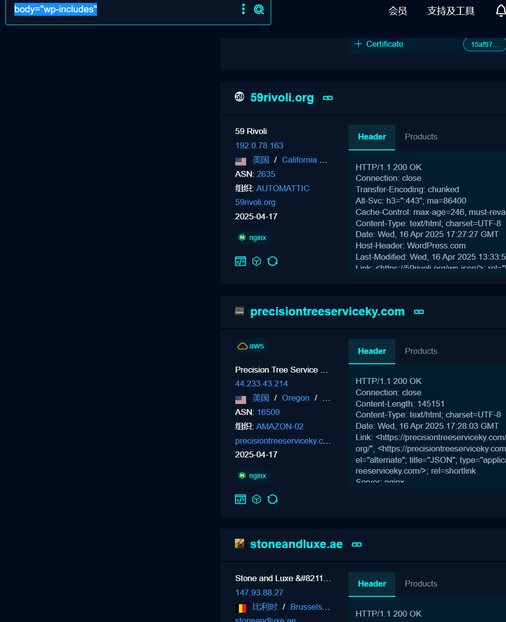 根据网站 response 返回头信息进行关键字匹配,这个一般是 ningx 这种