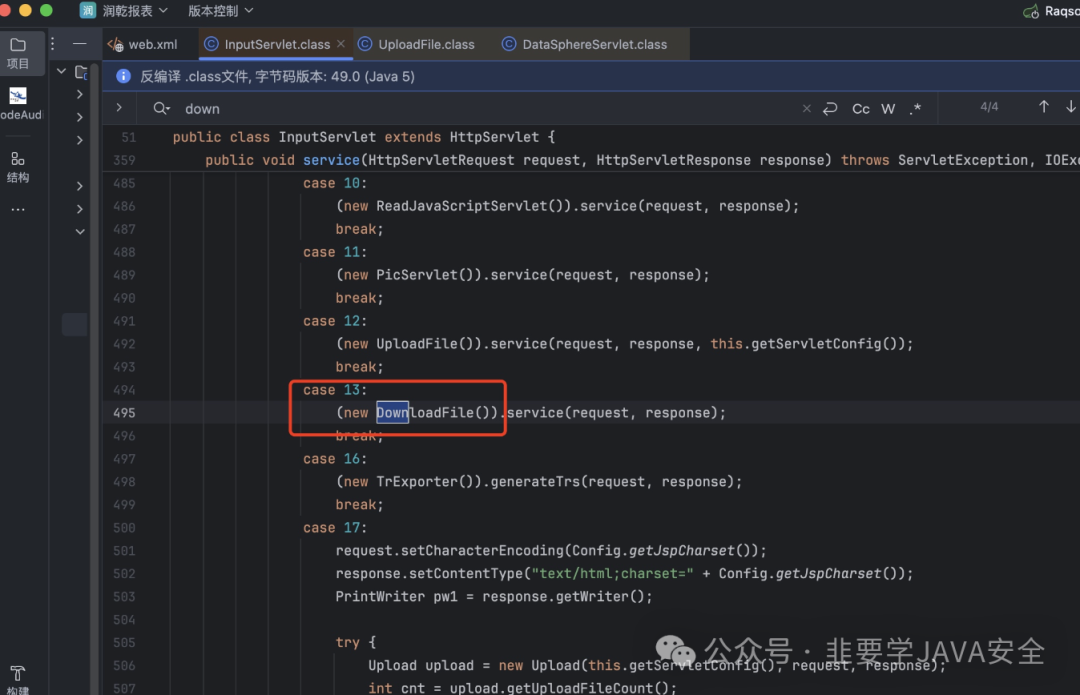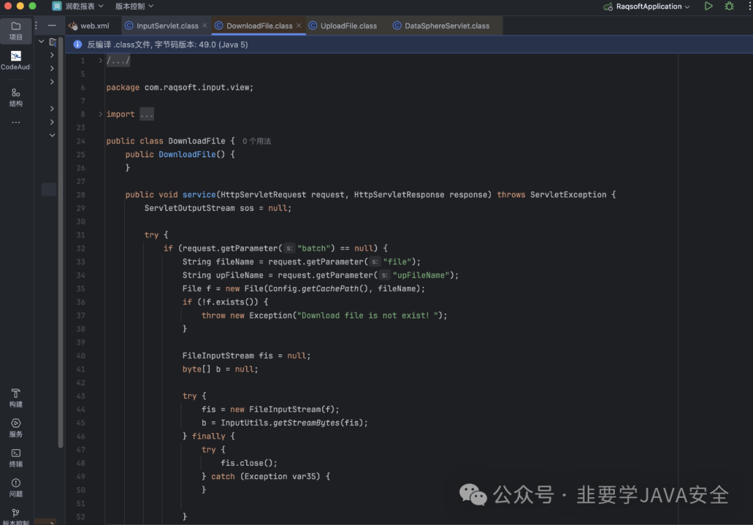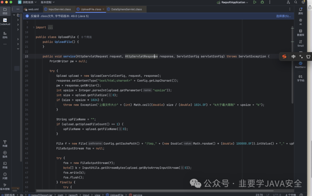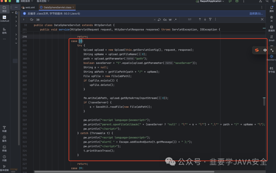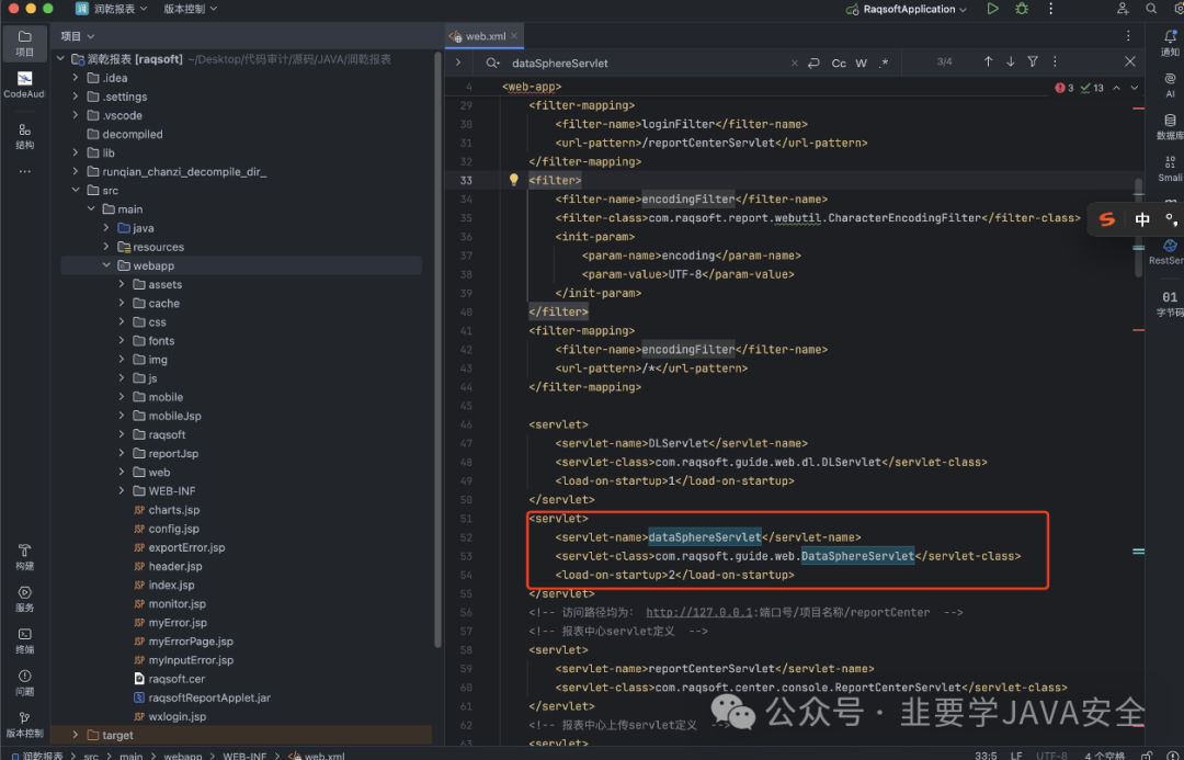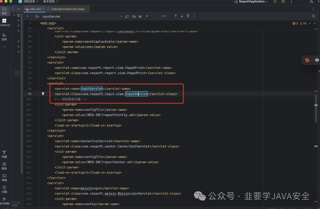 server-name里面有对应的类 进入 com.raqsoft.guide.web.DataSphereServlet 进入该类