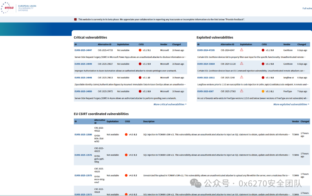 EUVD的上线不仅是技术工具的升级,更是全球漏洞治理模式的一次创新实验。通过“标准化框架(CVE)+区域化增强(EUVD)”的分层协作,欧盟为其他地区提供了可借鉴的模板。未来,随着漏洞数据的开放性与协同性进一步提升,跨区域、跨行业的漏洞联防体系或将成为现实。