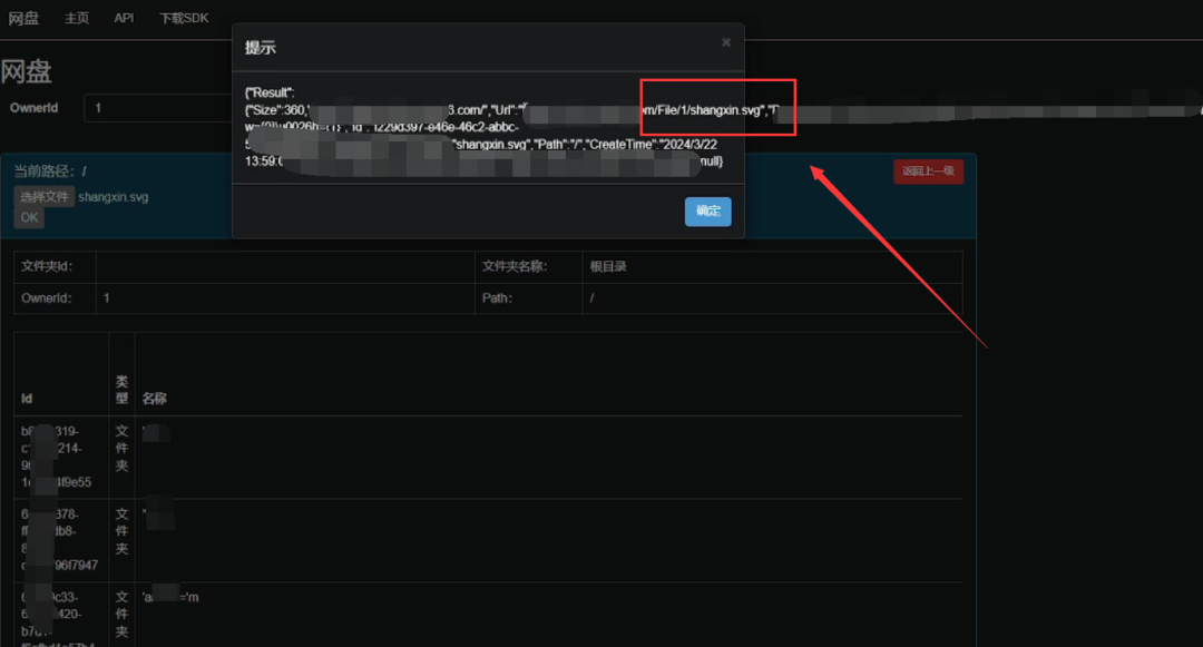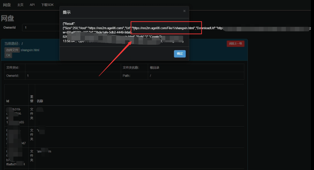上传成功,可以看到我这里上传的html文件的url路径,下面尝试访问下这个路径,看看里面的html恶意弹窗代码会不会执行