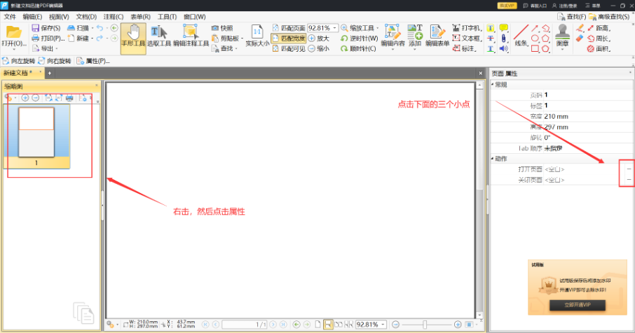 直接打开然后新建空白页面,然后点击属性,然后点击右边的小点点