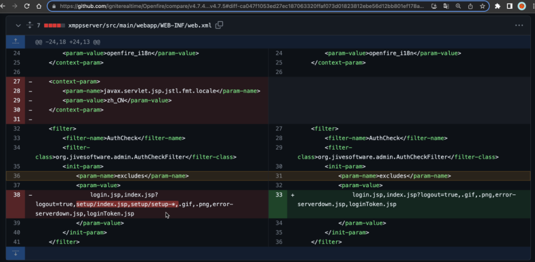 Openfire的API定义了一种机制,可以将某些URL从Web认证中排除,此机制允许使用通配符,以实现灵活的URL模式匹配。在存在漏洞的4.7.4版本中,