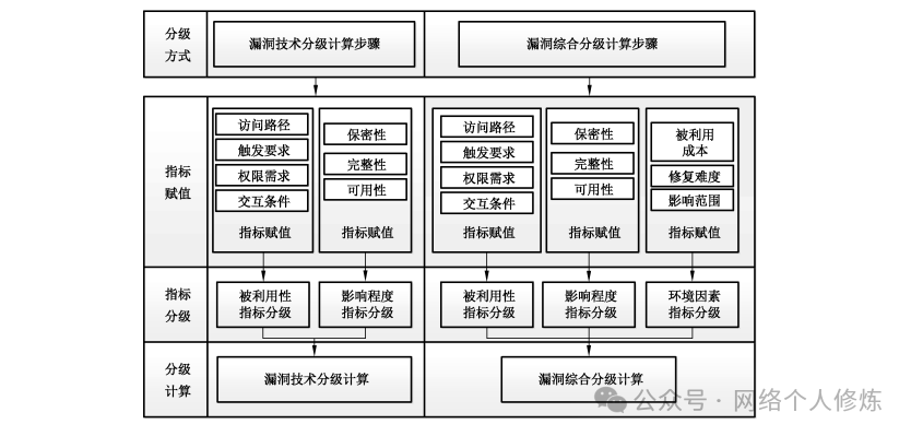 该标准的漏洞分级过程主要涵盖指标赋值、指标分级和分级计算三个步骤,每个环节都包含对应细致考量。