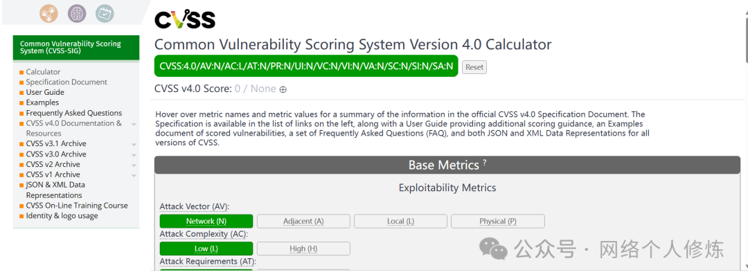 访问在线计算器来进行评分(https://www.first.org/cvss/calculator/4-0)