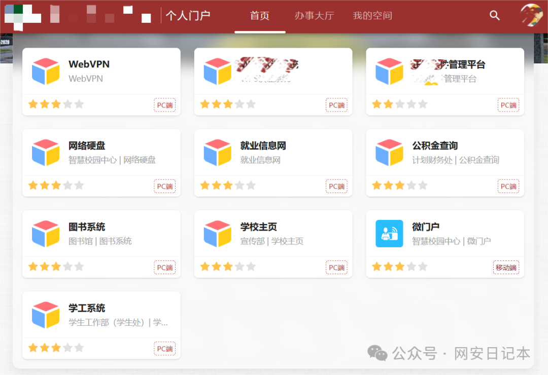 后面在尝试过程中更是发现了一个教师的统一门户弱口令,在登录门户后获取了多个系统登录以及管理权限,并成功利用VPN进入了内网。