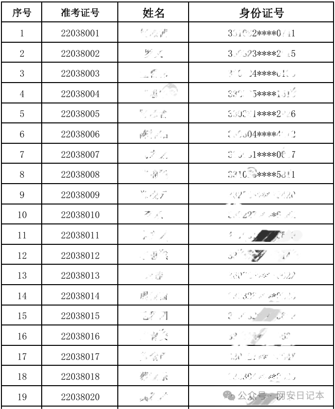 依旧是信息收集,在对目标院校进行信息收集,收集学号、工号的时候发现该学校的公示信息里面,对该校学生、老师信息进行了公示,其中还包含了打码的身份证号。