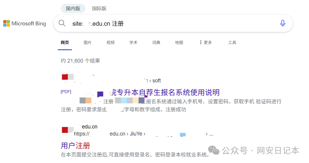 没办法了,只能上搜索语法进行信息收集,看看能不能有什么意外惊喜。这不,在使用谷歌搜索语句时,确实有了意外发现。使用 “site:XXX.edu.cn 注册” 语句进行搜索时,还真发现了一个可以注册的界面,点击进去查看是一个就业管理系统,公司可以进行注册,发布招聘信息。