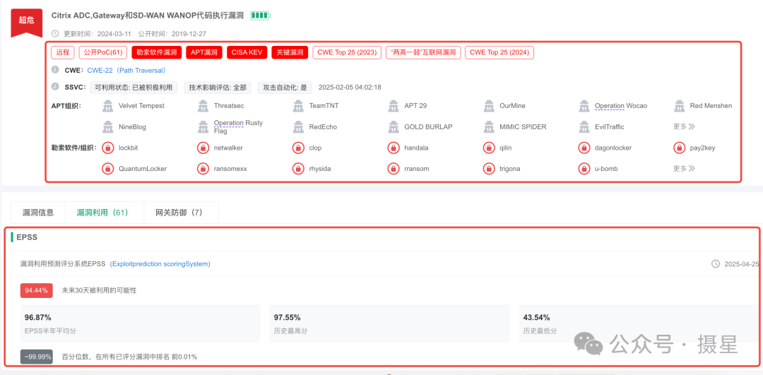 四、摄星玄猫漏洞情报赋能动态优先级评估