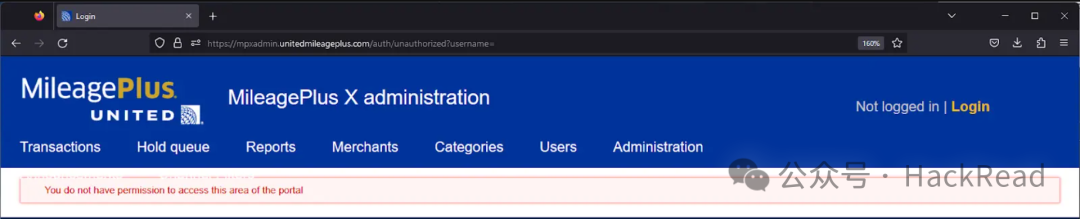 另一个我们可能能够(潜在地)进行身份验证的应用是“mpxadmin.unitedmileageplus.com”网站。我们无法确认这一点,因为在发现该问题时,我们没有拥有可能有权访问该应用的联合航空员工的姓氏和MileagePlus号码。如果我们有的话,我们推测应该是可能的,并且这种级别的访问权限将允许我们管理客户的余额、查看交易记录,并对MileagePlus奖励计划执行管理操作。