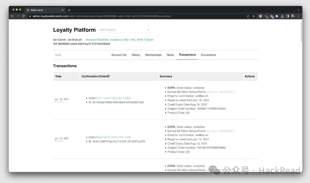 更严重的是,攻击者还可以利用这些漏洞执行一系列操作,例如从用户账户中转移积分,甚至获取全球管理员网站的未授权访问权限。一旦获得此权限,攻击者将具备完全的操作权限,能够发放奖励积分、管理奖励计划、查看和控制用户账户,以及执行其他管理操作。