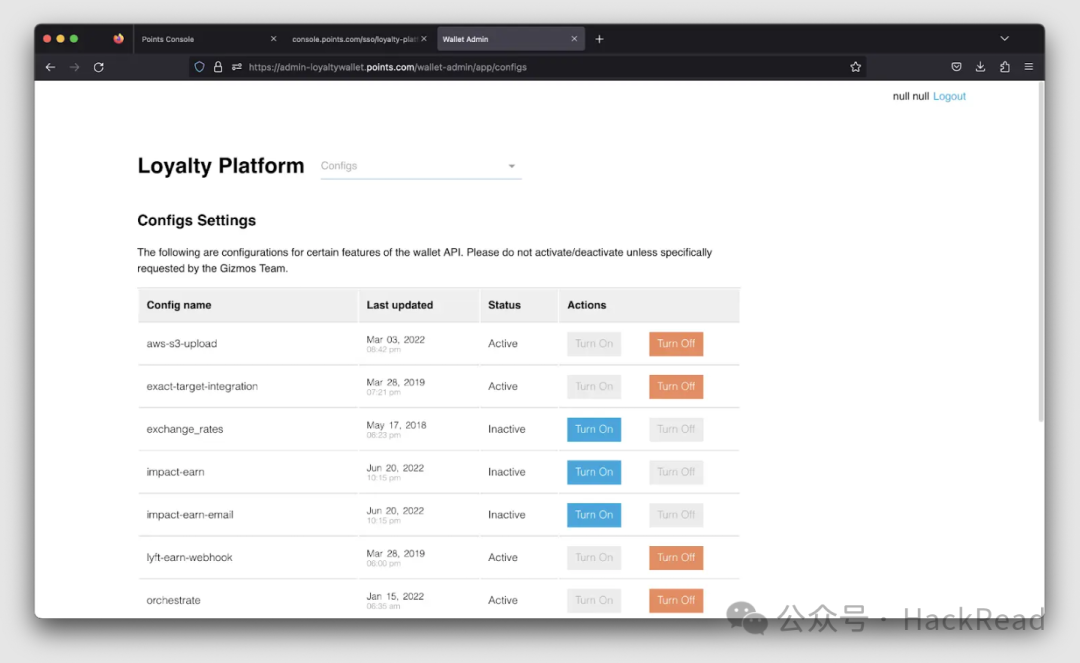 需要注意的一点是,这个管理面板是为 points.com 员工设计的,用于在租户级别管理奖励程序。拥有这种访问权限的攻击者可以撤销实际航空公司用于提供服务的凭证,阻止其客户访问 API,从而关闭该特定航空公司的全球奖励旅行。除了访问客户账户信息之外,这种访问权限还存在许多恶意攻击者可以滥用的有趣场景。