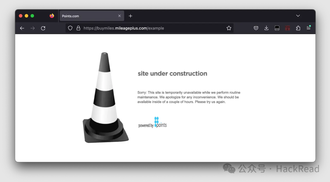 在我们完成报告或查看是否有其他端点可访问(例如,向客户奖励账户添加积分)之前,points.com 团队就已经检测到我们的测试,并且完全关闭了联合航空的生产版 points.com 网站。真可惜!如果我们是恶意行为者,通过该漏洞试图枚举任何大量记录(查询每次返回 100 条记录),我们可能会被抓到。points.com 团队的检测与响应实在令人印象深刻。
