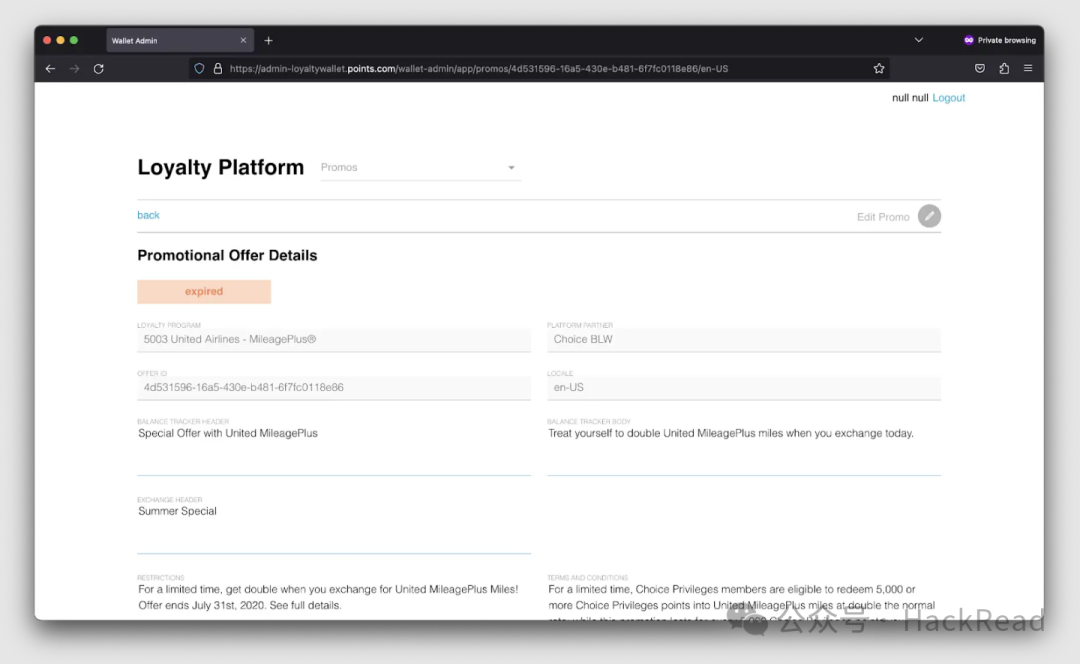 在2023年3月至2023年5月期间,我们在 points.com 中发现了多个安全漏洞。该平台是众多航空公司和酒店积分奖励计划的后台服务提供商。这些漏洞可能使攻击者能够访问用户的敏感账户信息,包括姓名、账单地址、脱敏处理后的信用卡信息、电子邮件、电话号码以及交易记录。